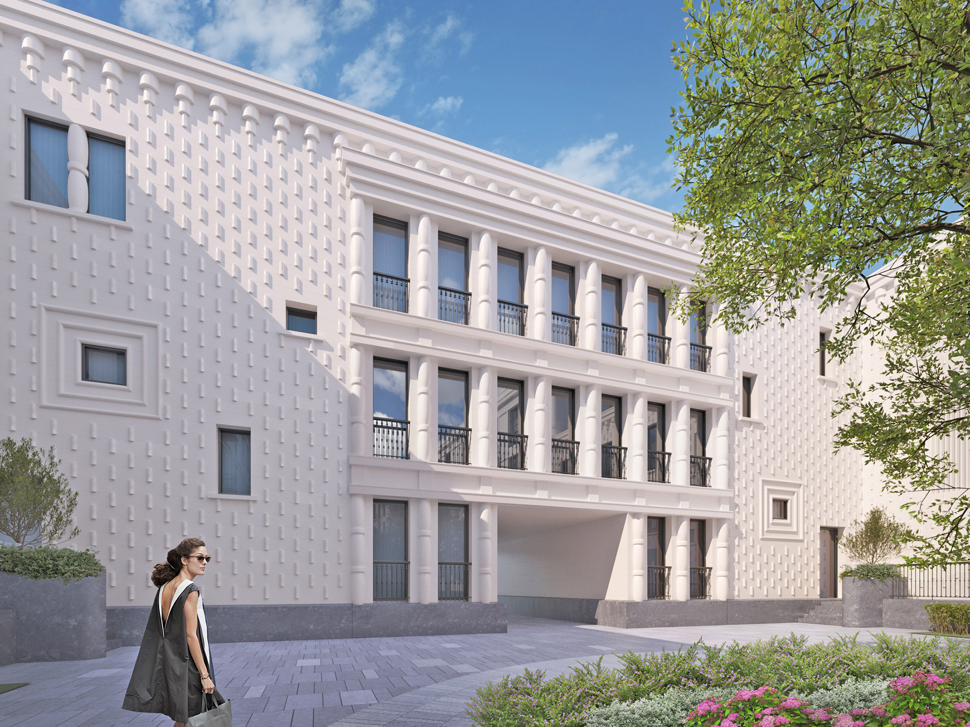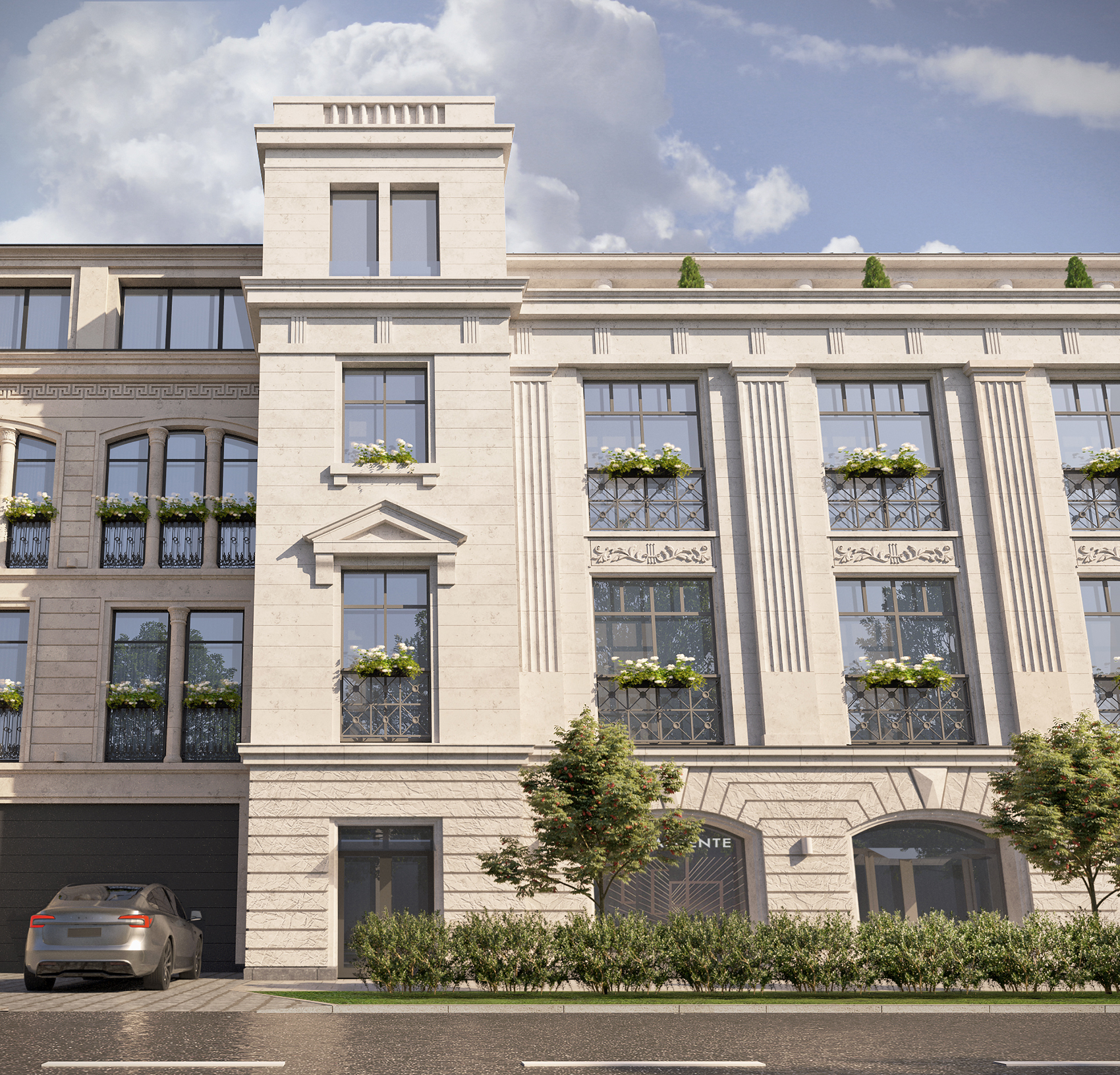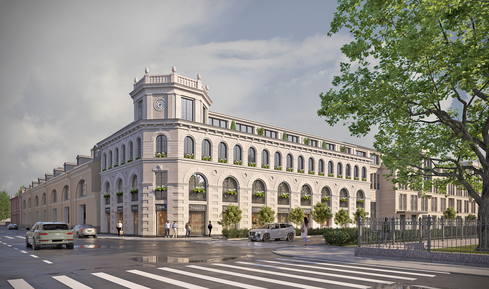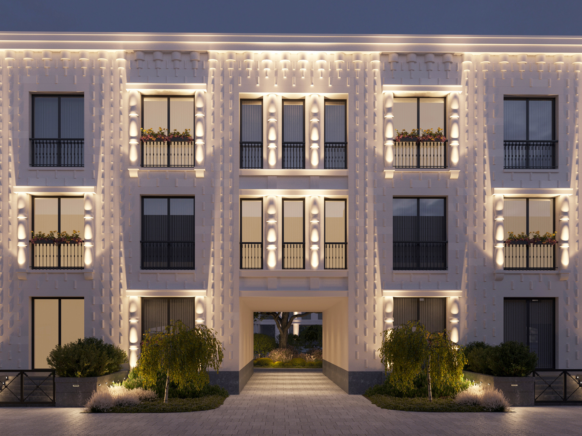 of a residential complex with 300 apartments and a 4-storey maximum height