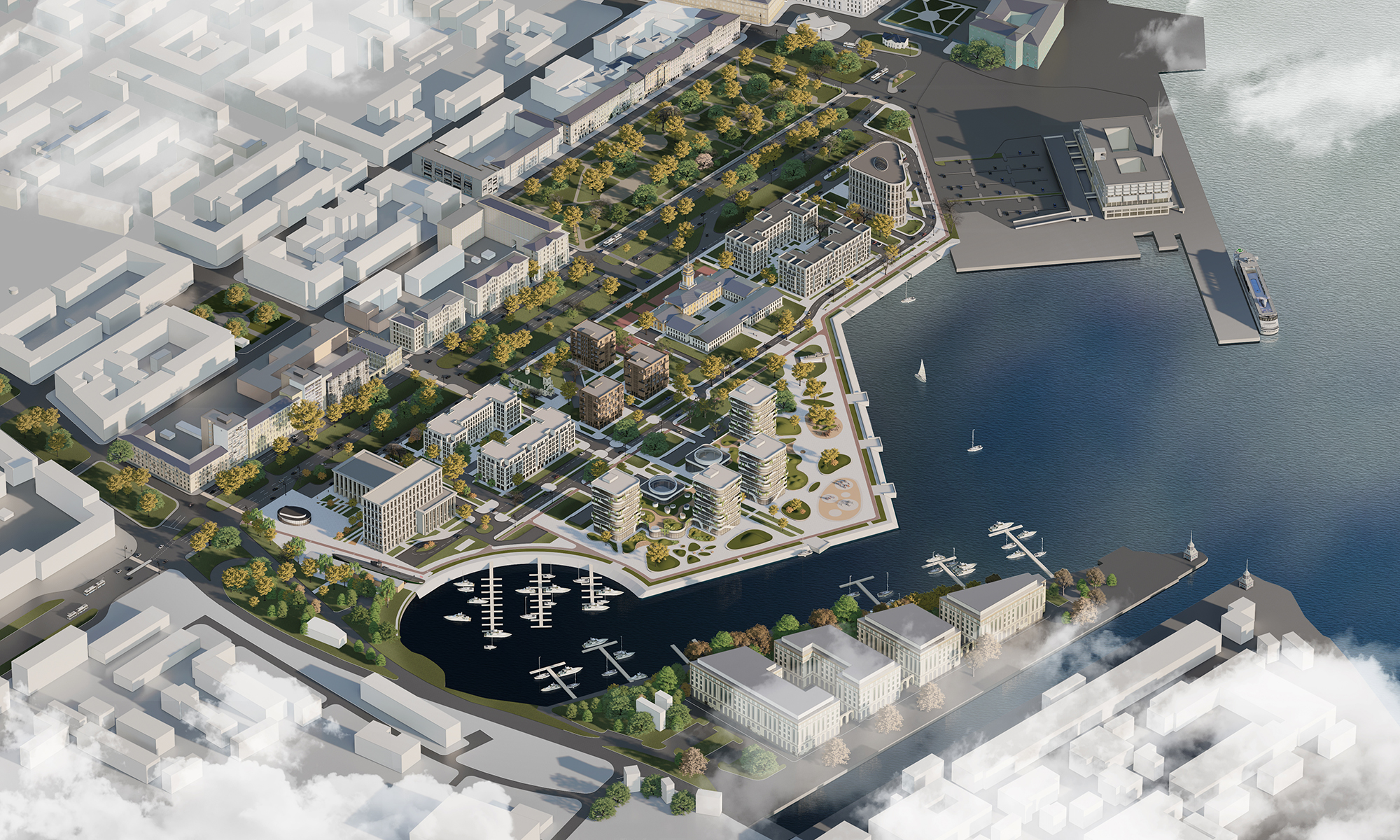 publicly accessible promenade, sport areas, gardening, streetlights, public