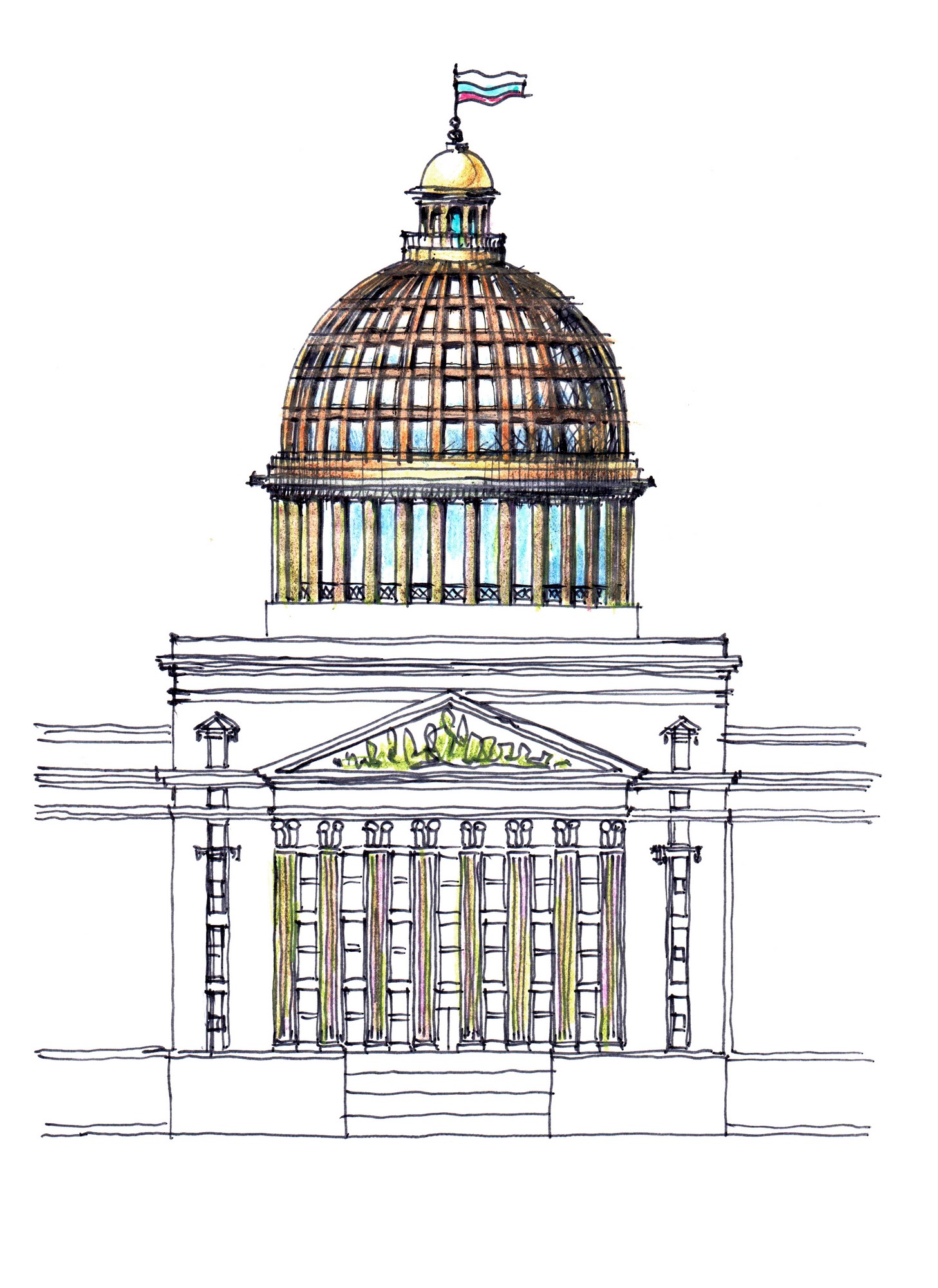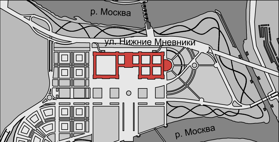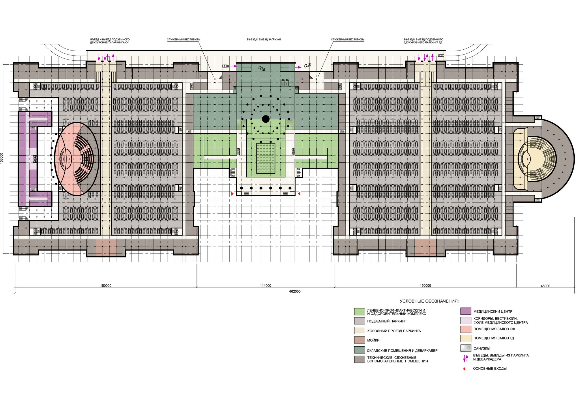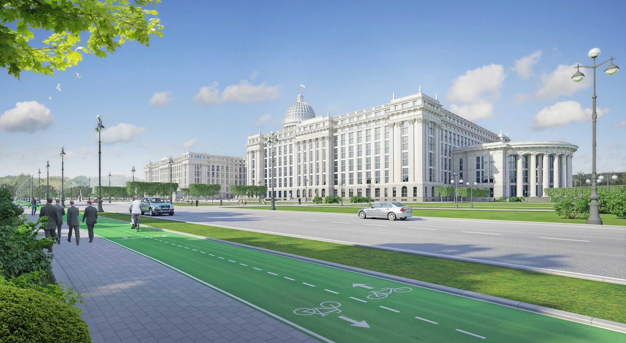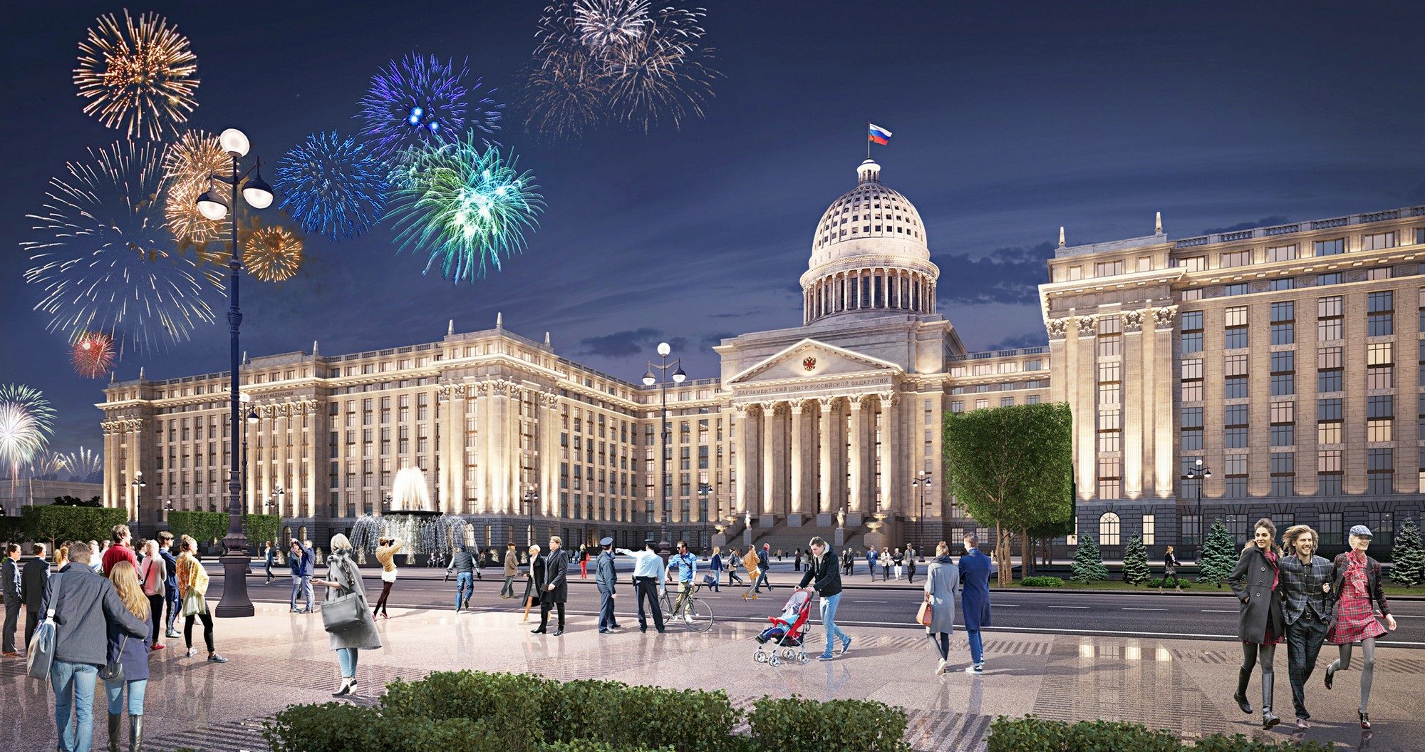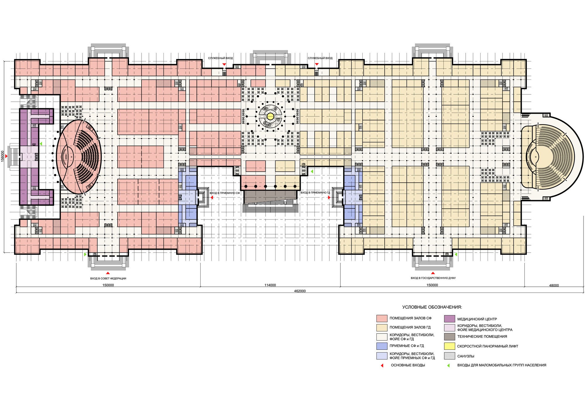 The contest for the Parliamentary Centre of the Russian Federation design was conducted in two stages. At each stage, the designs proposed by the Workshop reached the finals. This design was based on New Classicism as the most appropriate style taking into account the building’s function.