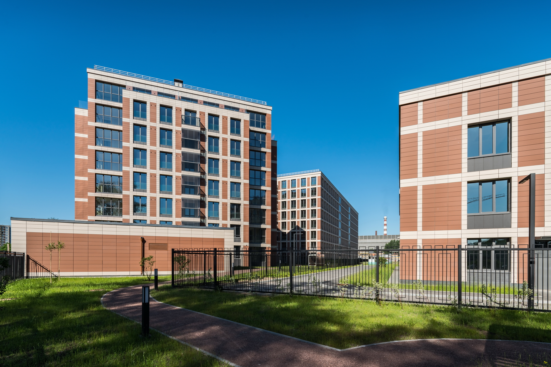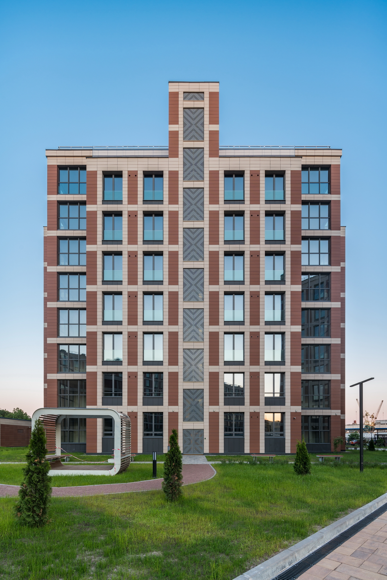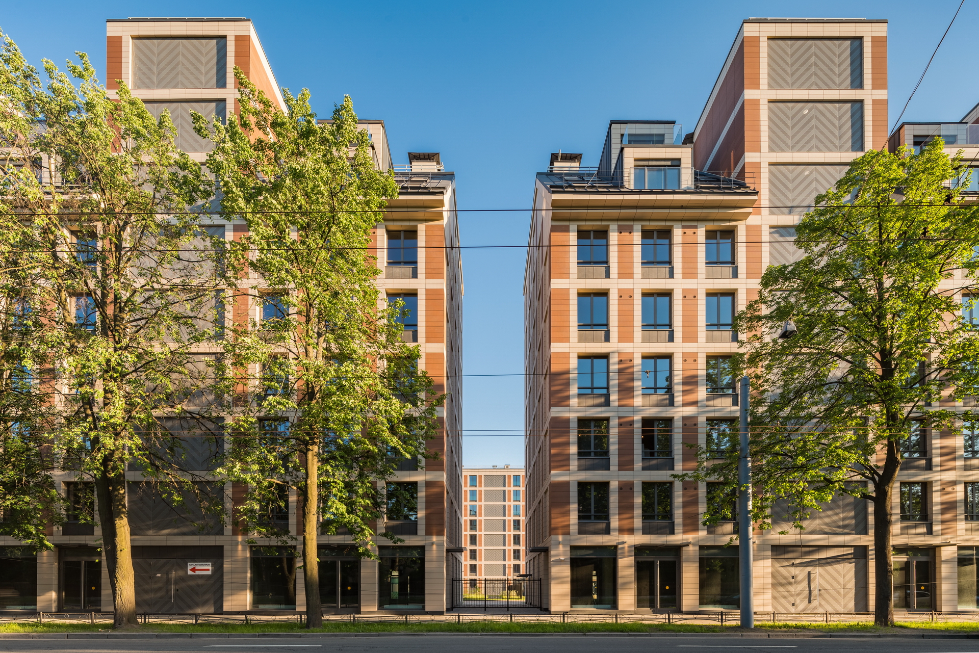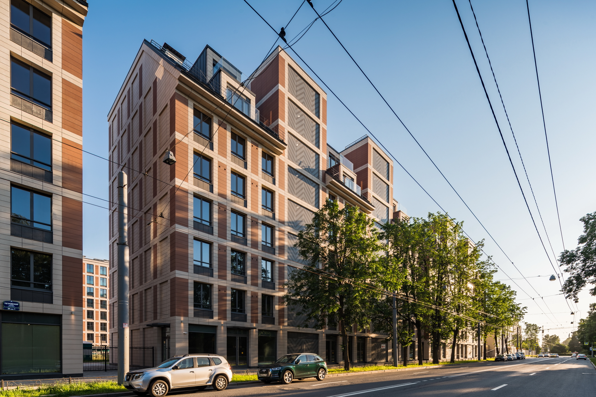 The residential complex is located on the Petrovsky island at the bank of the Malaya (Little) Neva river, in the proximity of historical development of the Petrogradkaya Side and the Vasilievsky Island. At the same time, Petrovsky Island itself has no coherent development of its own: it is partly constituted of a green area and partly of a former industrial area, which is now extensively developed.