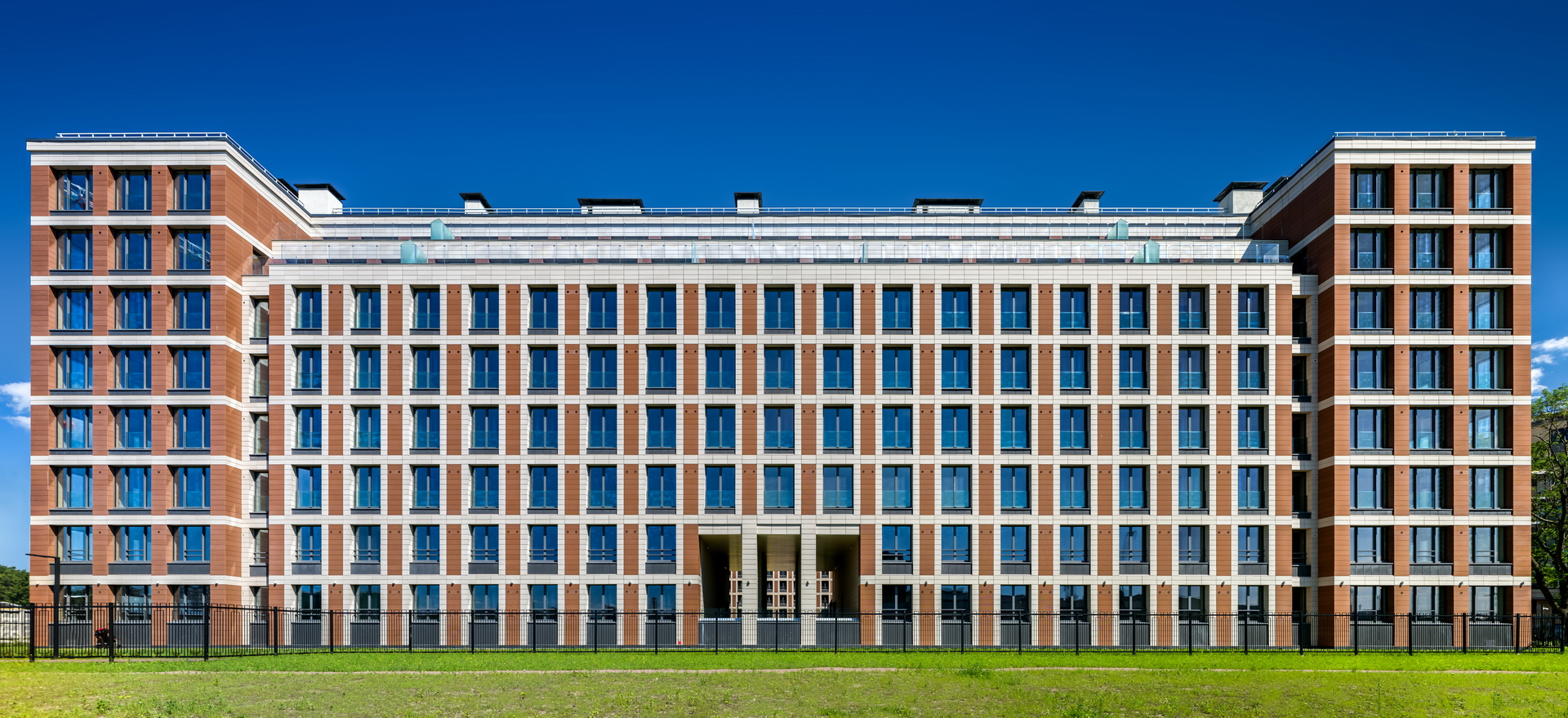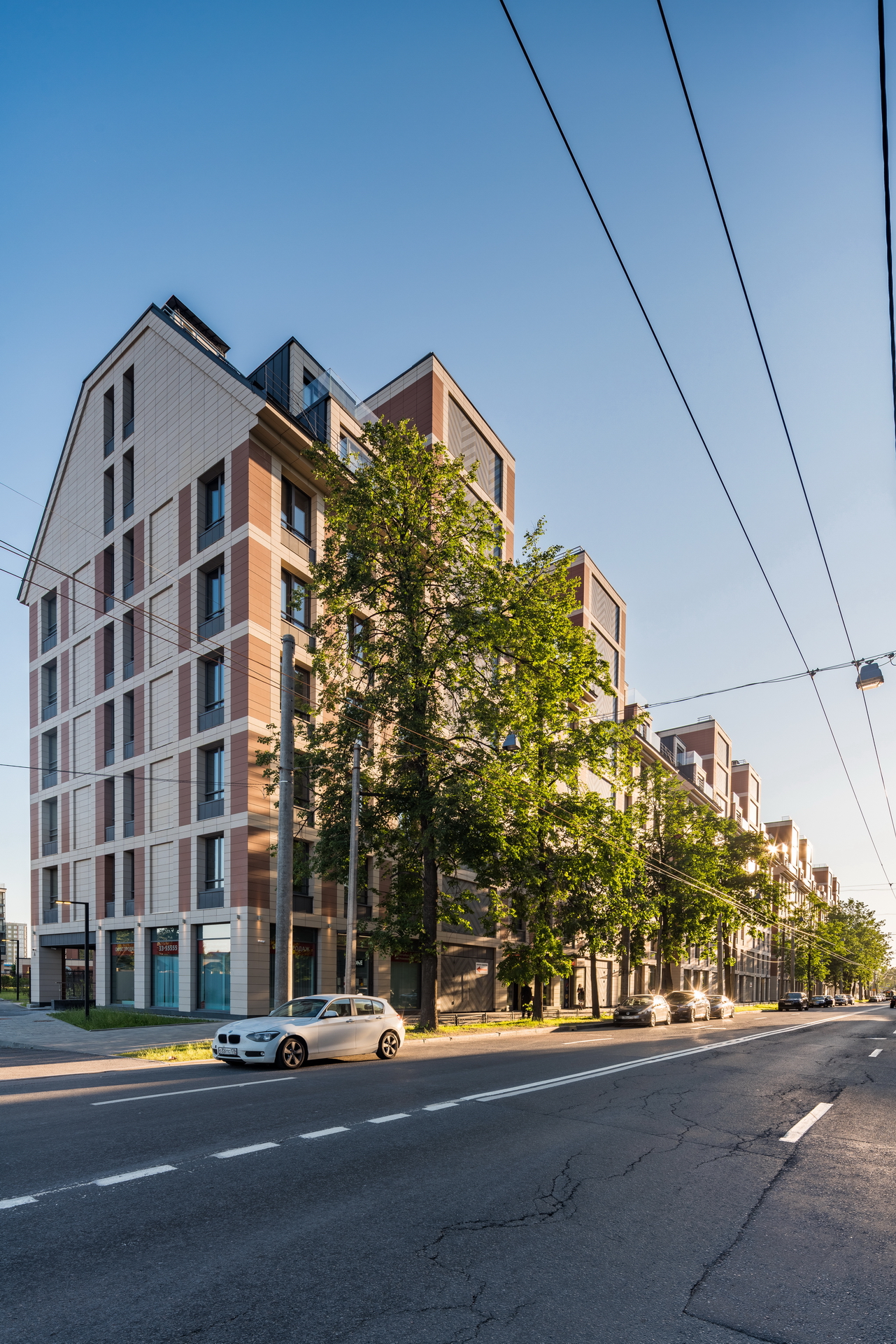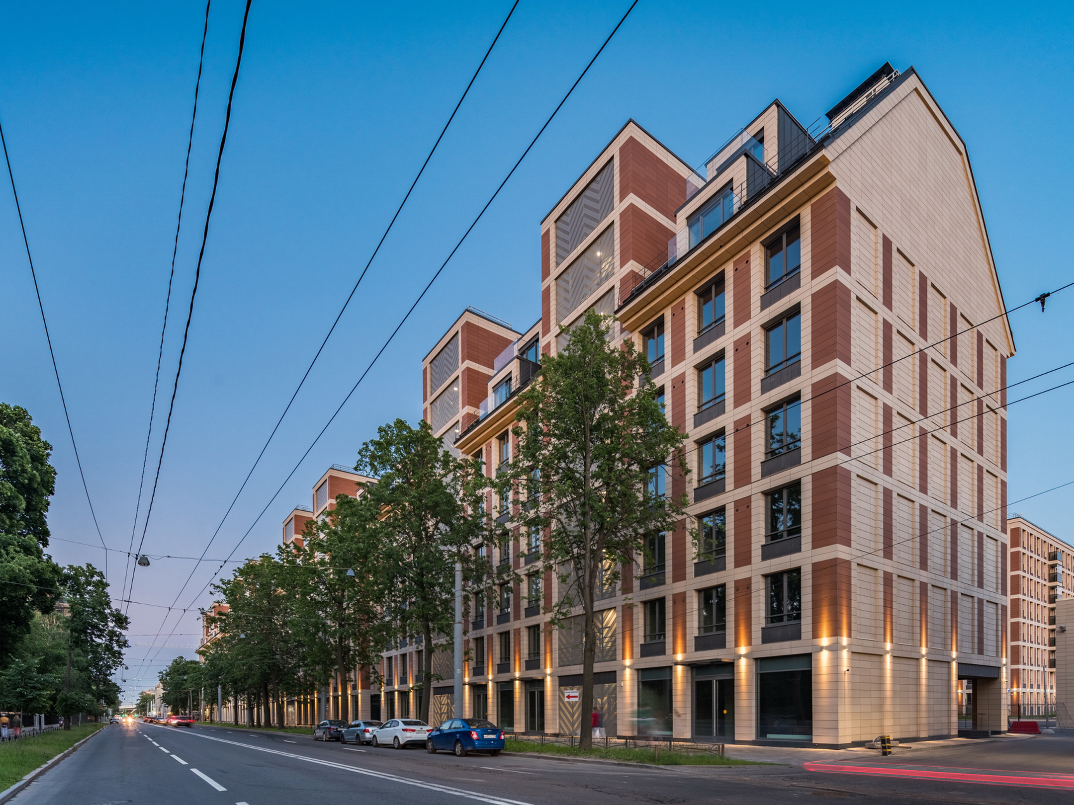 The residential complex is located on the Petrovsky island at the bank of the Malaya (Little) Neva river, in the proximity of historical development of the Petrogradkaya Side and the Vasilievsky Island. At the same time, Petrovsky Island itself has no coherent development of its own: it is partly constituted of a green area and partly of a former industrial area, which is now extensively developed.