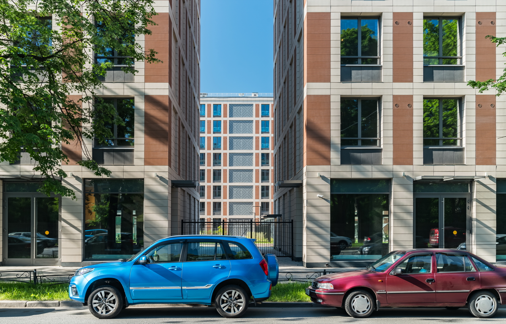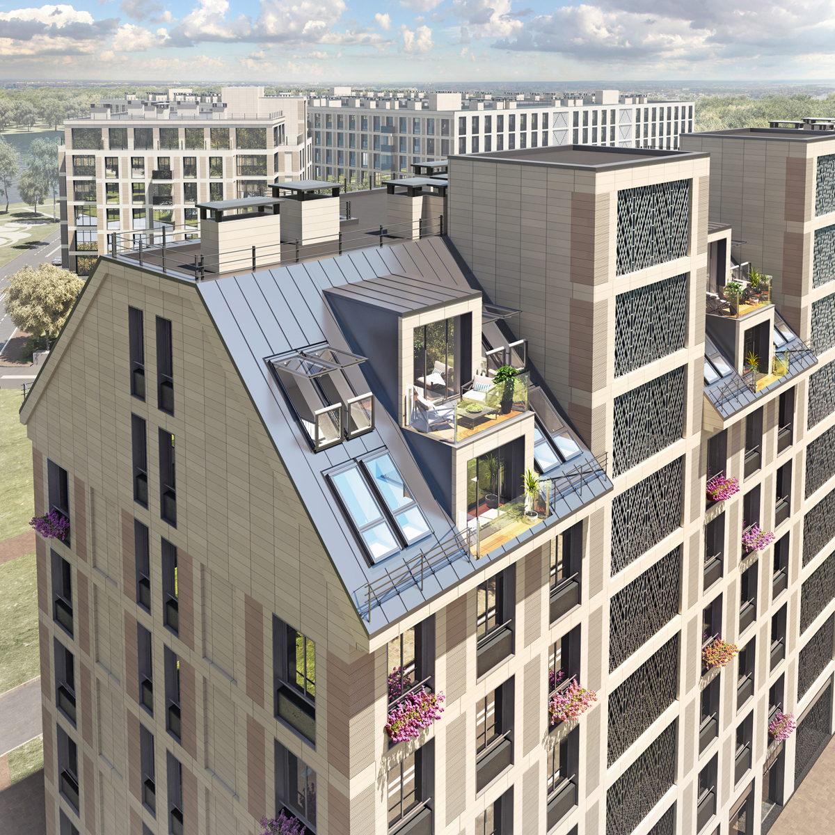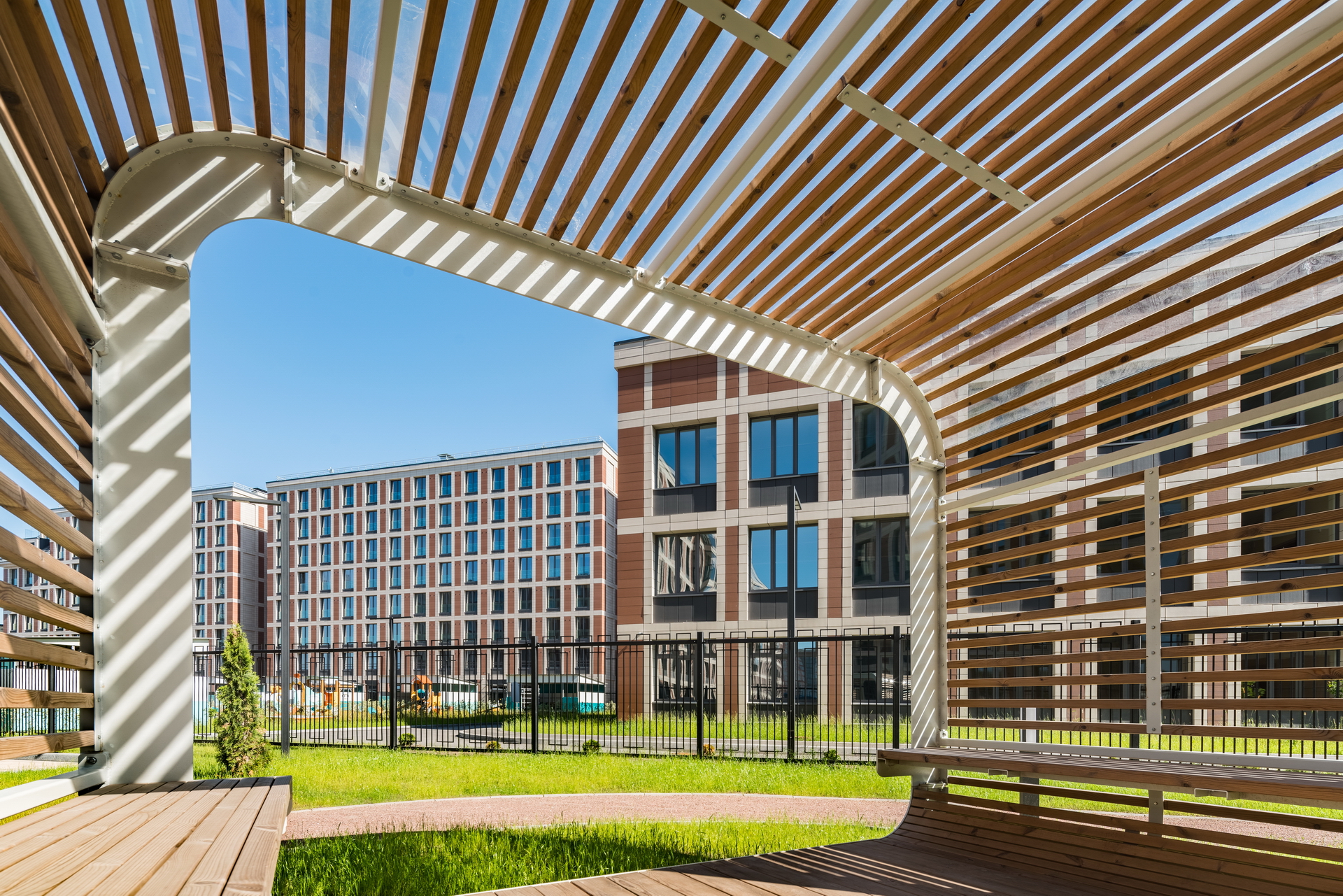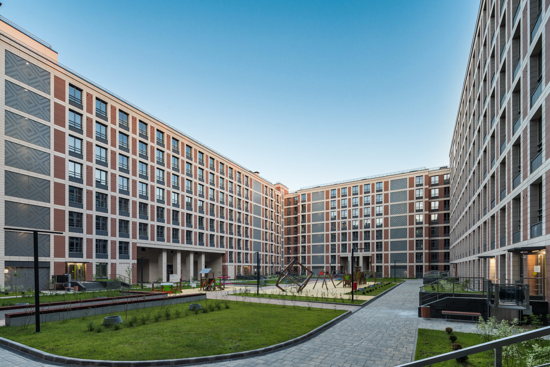 The residential complex is located on the Petrovsky island at the bank of the Malaya (Little) Neva river, in the proximity of historical development of the Petrogradkaya Side and the Vasilievsky Island. At the same time, Petrovsky Island itself has no coherent development of its own: it is partly constituted of a green area and partly of a former industrial area, which is now extensively developed.