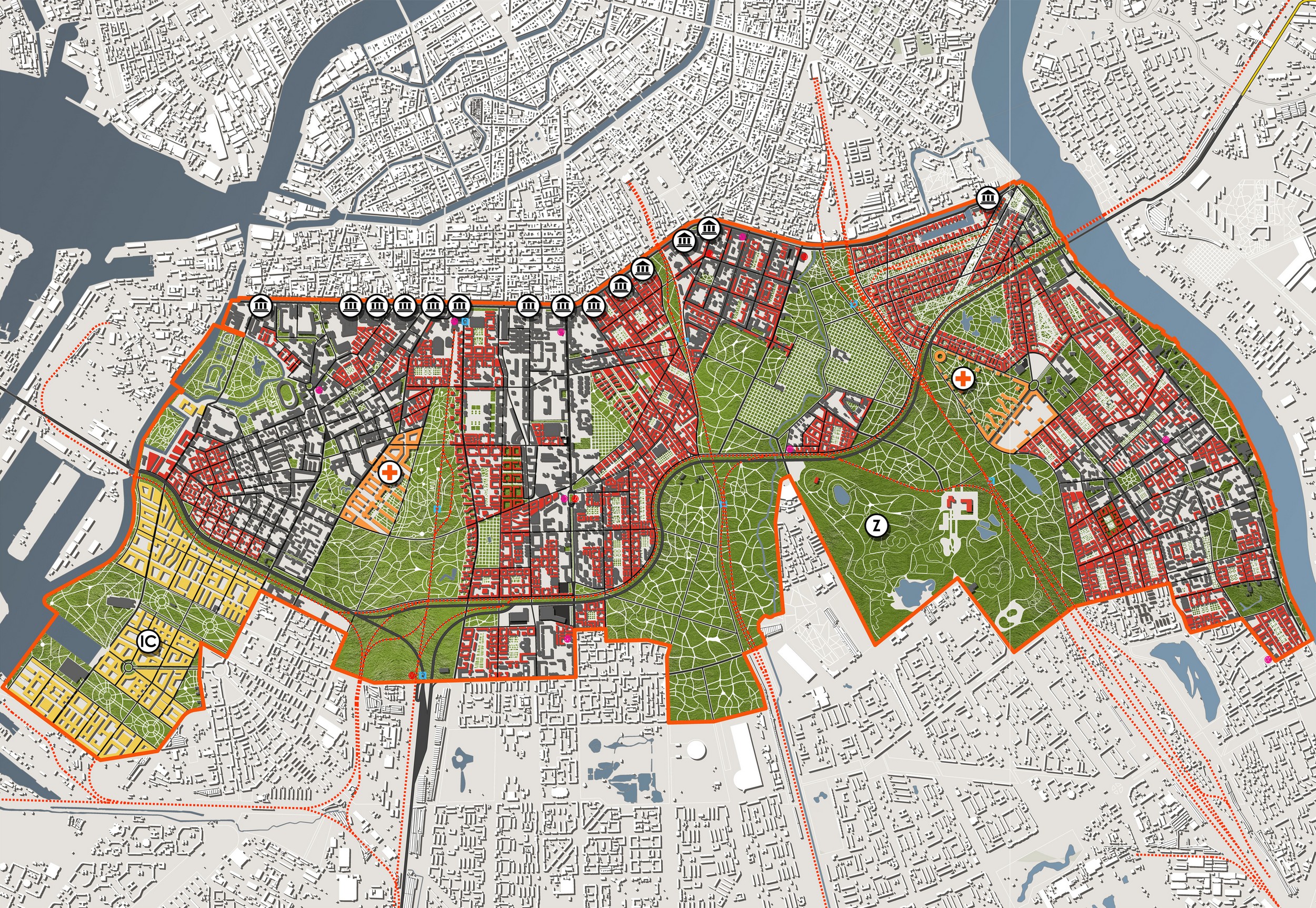 The international architecture and urban-planning contest for an approach to transformation of the southern part of Saint-Petersburg’s historical industrial/residential area, or the «grey belt» of the city.