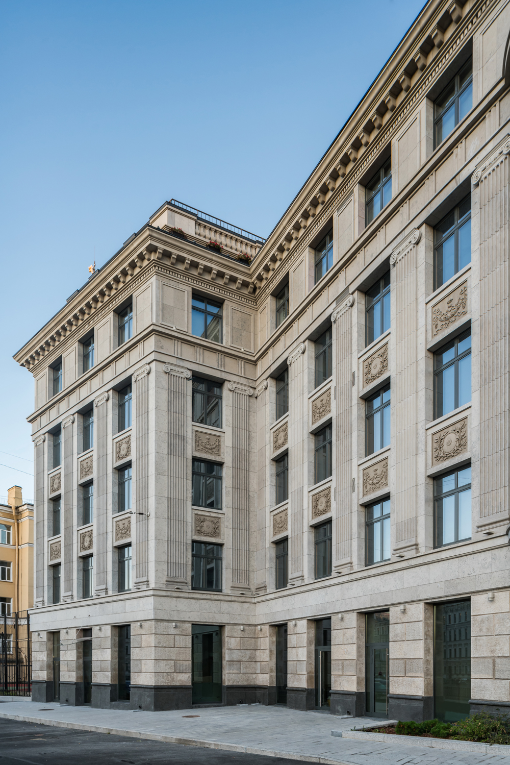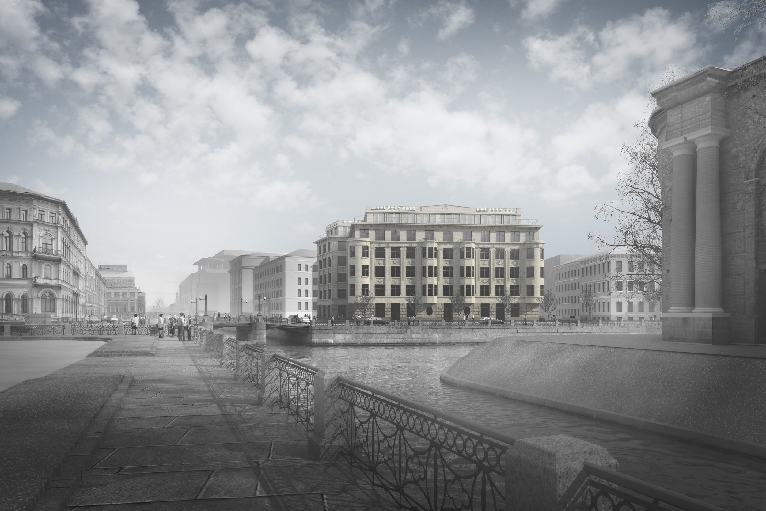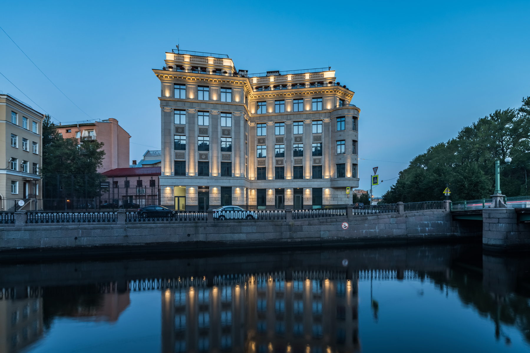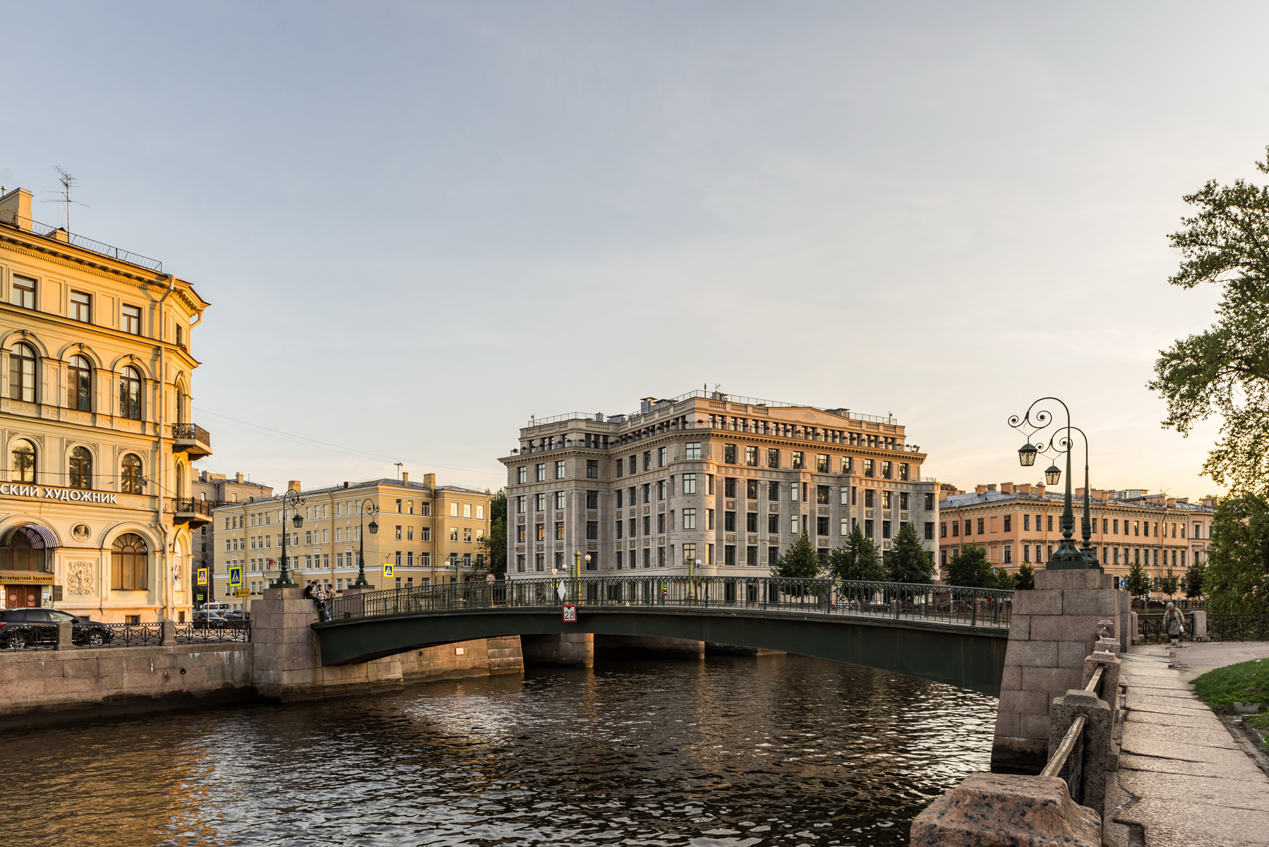 Art View House на открыточном «перекрестке» Мойки и Крюкова канала – еще один эксперимент бюро «Евгений Герасимов и партнеры» с неоклассикой, а также аккуратное завершение архитектурной панорамы в центре города.