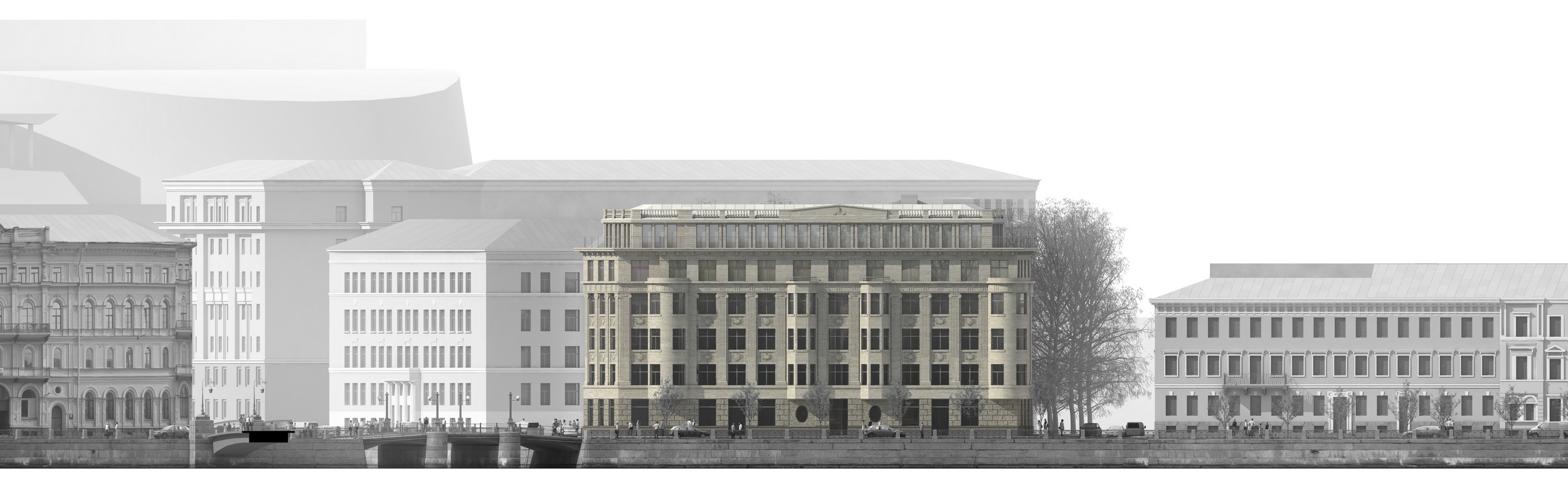 Архитектурно-композиционное решение здания выполнено в стилистике, характерной для исторического центра города и особенно близко к окружающей застройке, сложившейся в районе Крюкова канала, Мариинского театра и Новой Голландии.