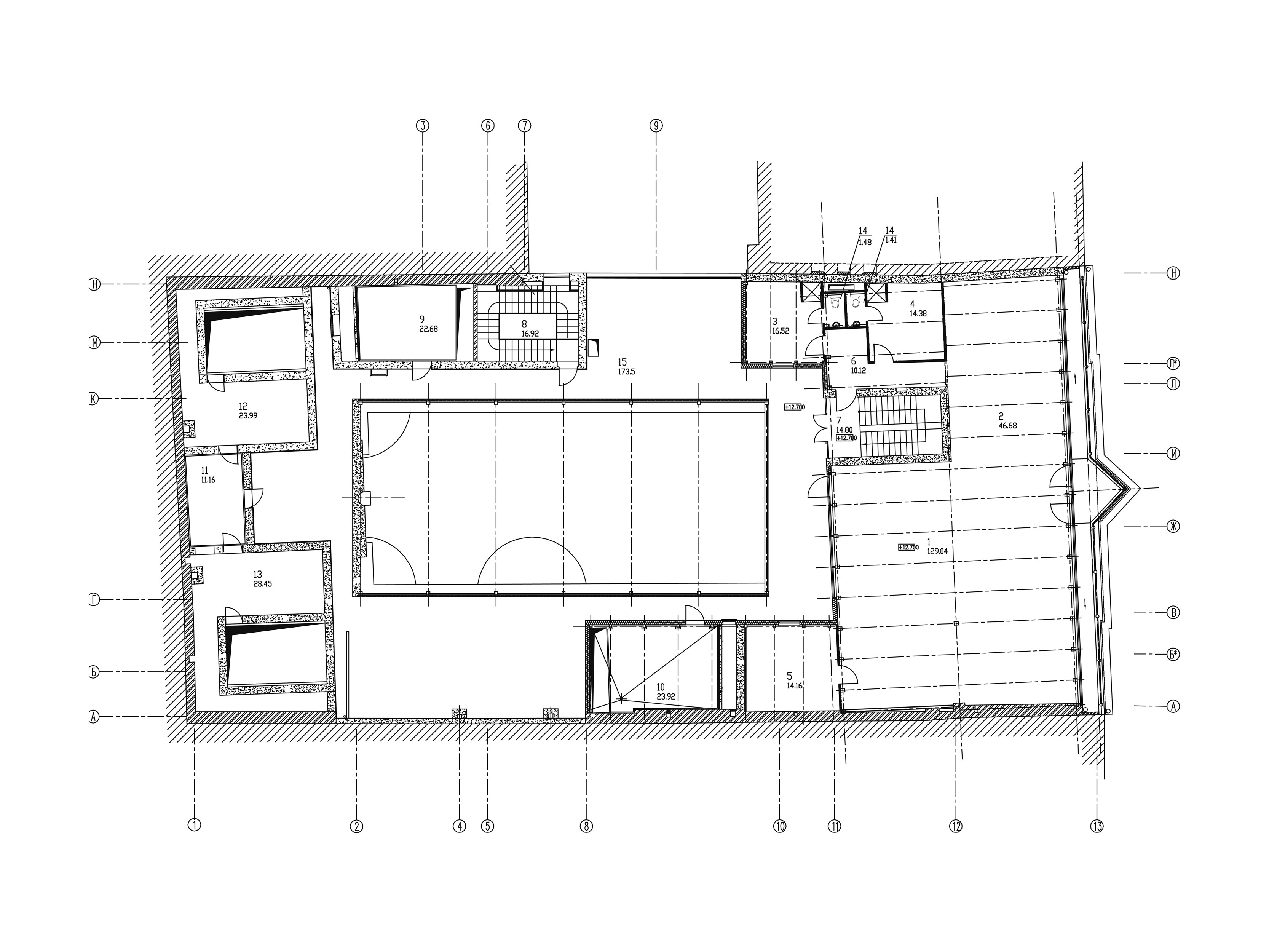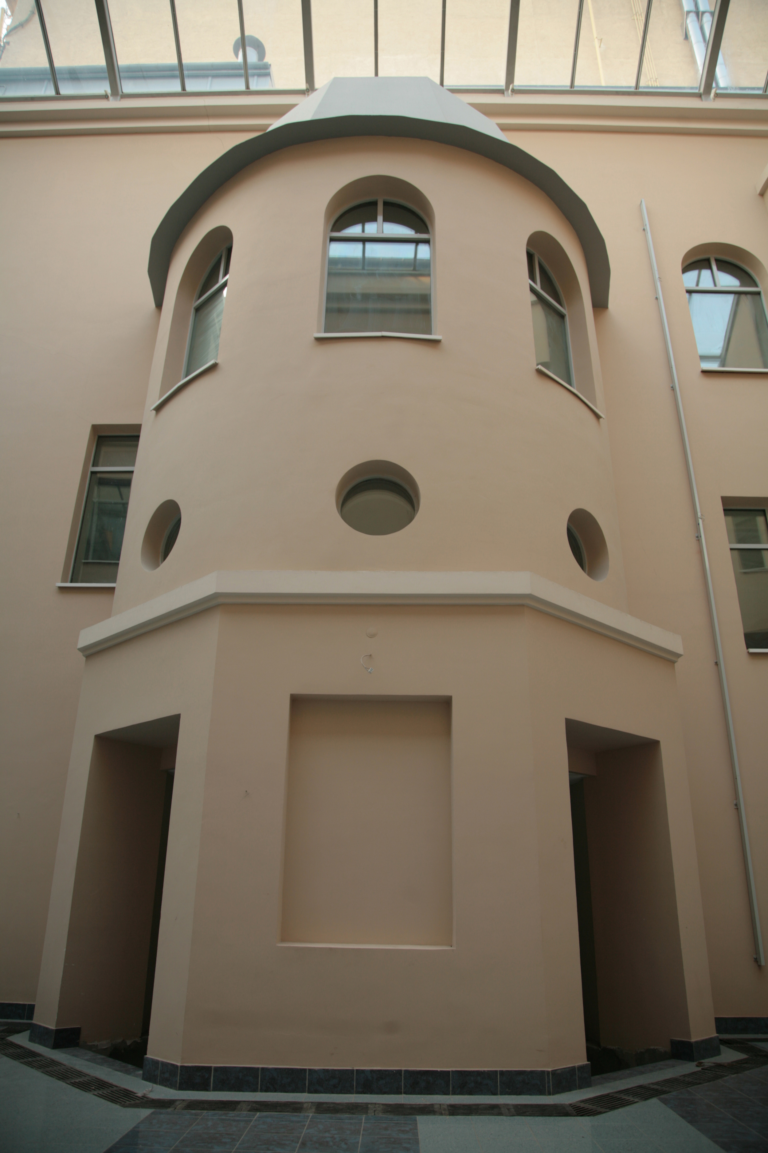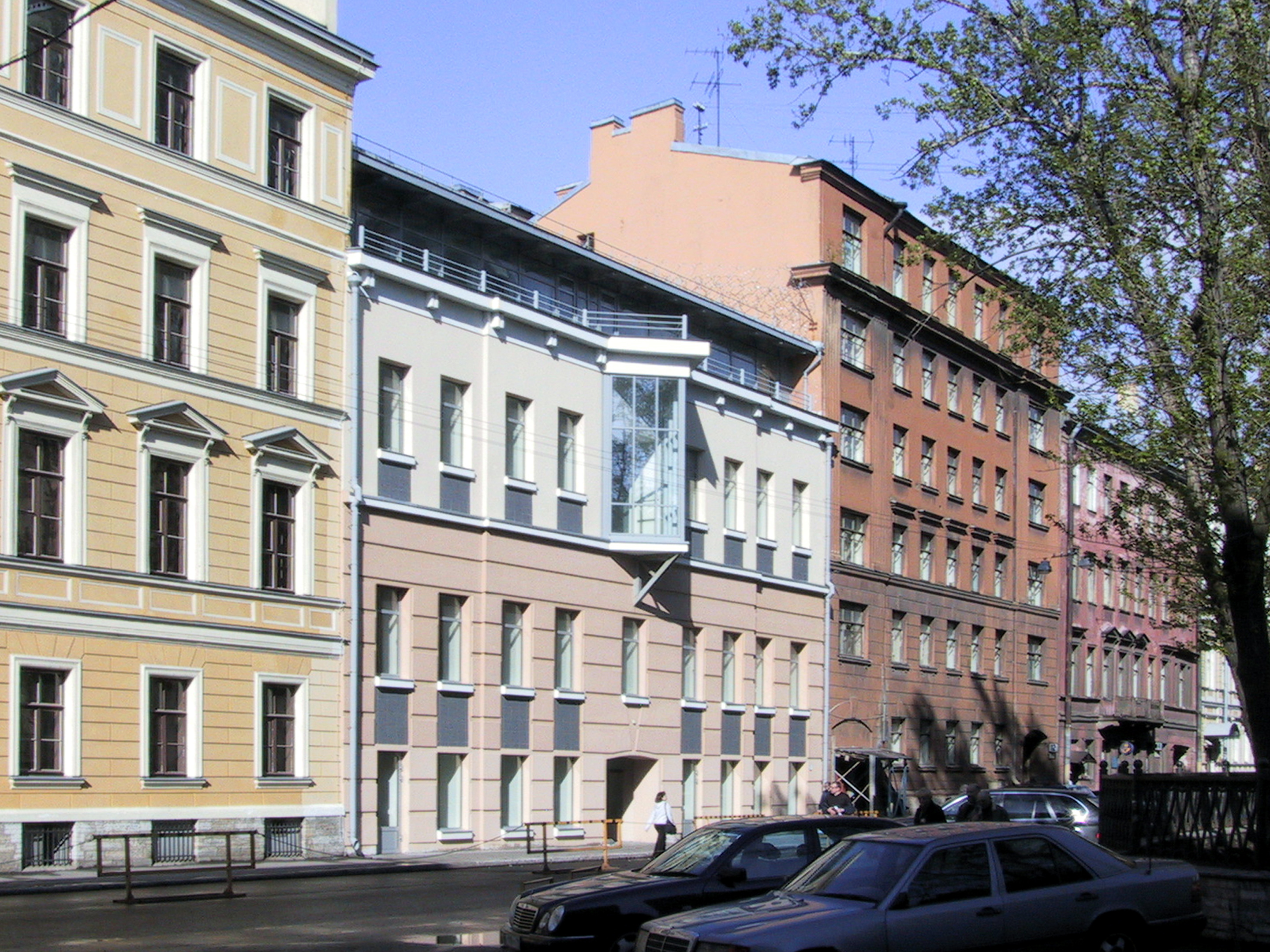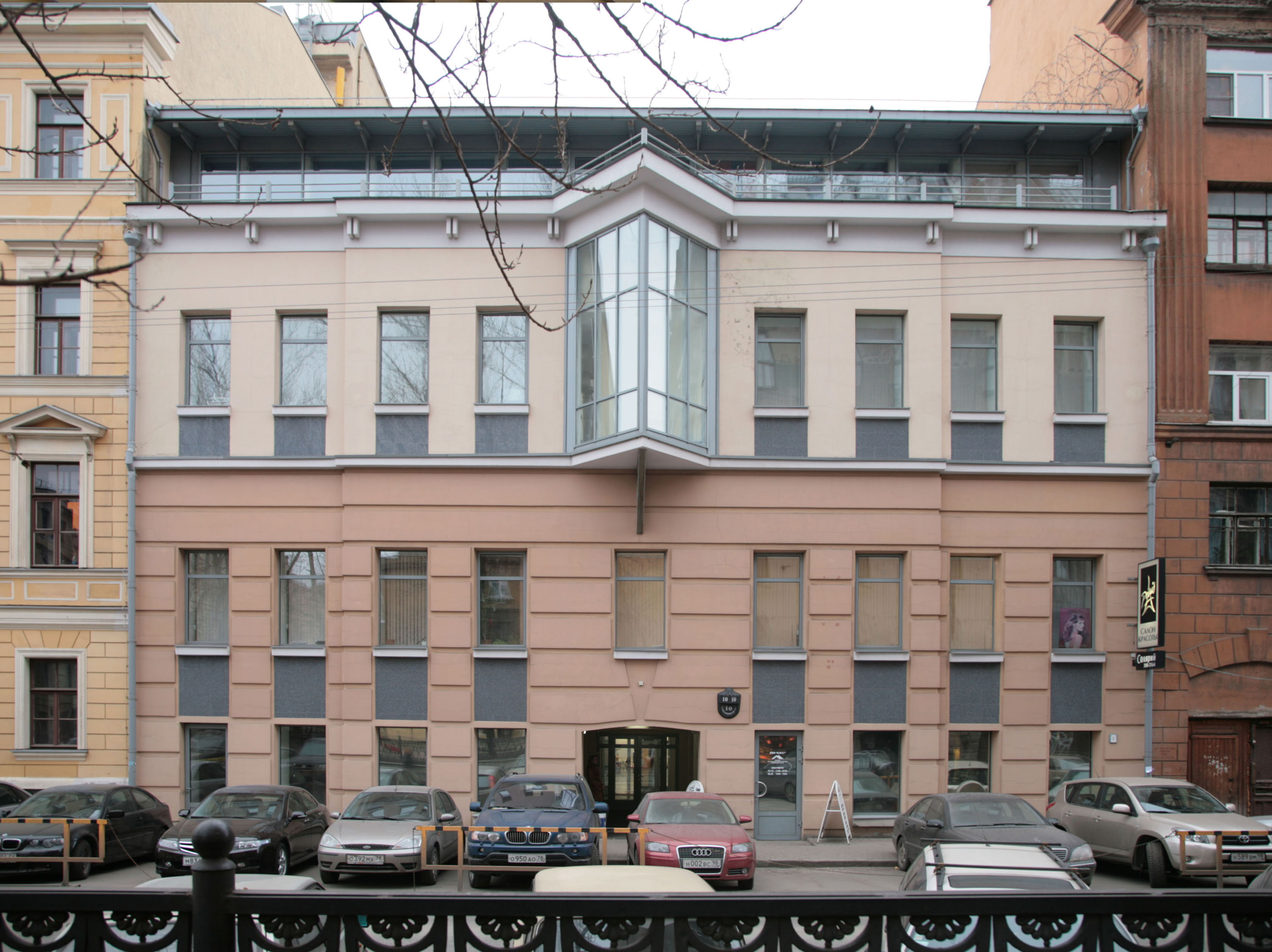 Для реконструкции бывшего дома купца Худякова под офисный центр было выбрано решение, сочетающее элементы традиционного и современного архитектурного языка. Дворовое пространство перекрыто светопрозрачными конструкциями, в нем устроен атриум. Лицевой фасад надстроен стеклянной мансардой с галереей-террасой вдоль Стремянной улицы, а ярким акцентом фасада является треугольный остеклённый эркер.