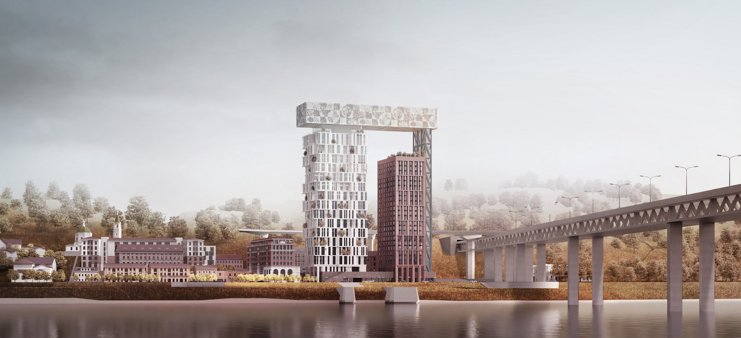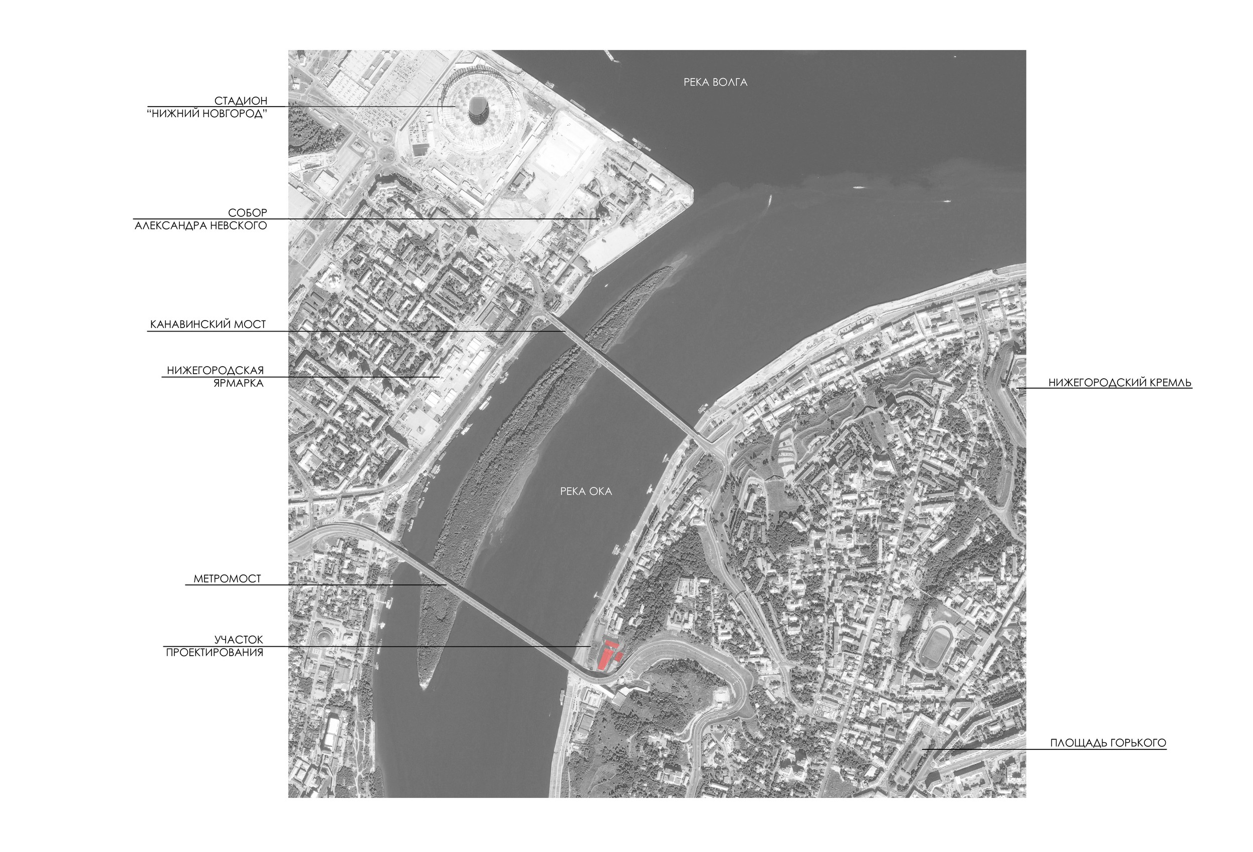 Многофункциональный центр запланирован в исторической части Нижнего Новгорода, в живописной излучине реки Оки, на месте элеватора бывшего мукомольного завода с почти полуторавековой историей. Все сохраненные исторические корпуса составят часть нового комплекса с высотной доминантой на месте элеваторных башен.