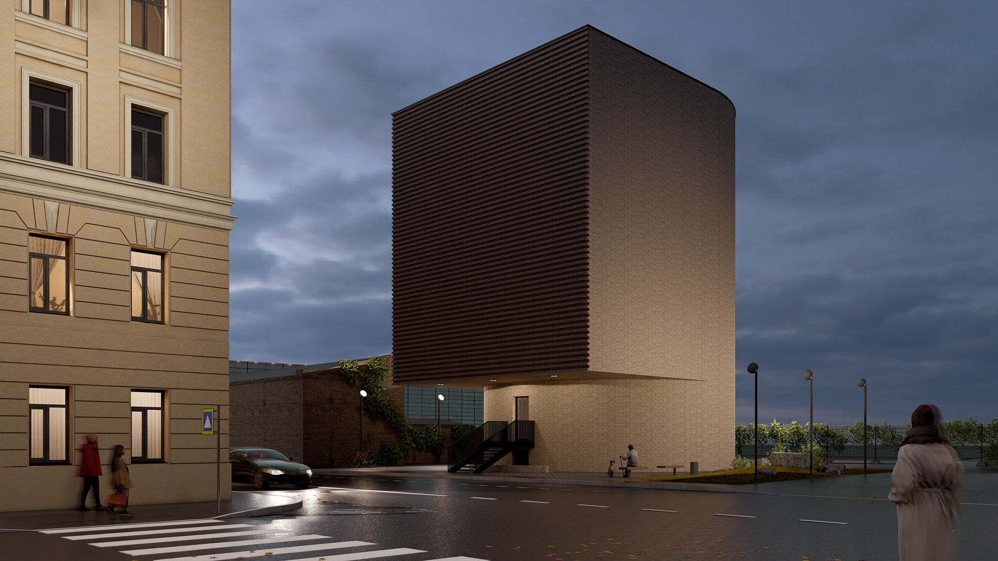 Проект реконструкции бывшей насосной канализационной станции на Кожевенной линии, дом 26, литера А. В соответствии с заданием на проектирование, в качестве основания для нового объема наземной части, является существующая подземная часть бывшей насосной станции.
